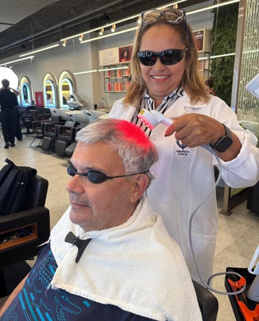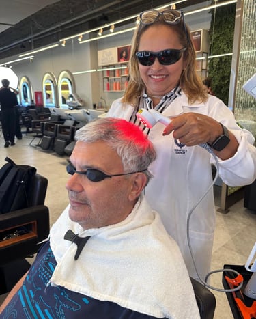 Com conhecimento técnico e experiência prática, oferece soluções para problemas como queda capilar, caspa, dermatite, alopécia, corte químico e calvície masculina.